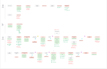 Rather than attempting to map all these discrete workflows, we focused on the core activities and pain points. We also paid close attention to those steps when we knew users would have to go out of the system to complete processes due to gaps on our end (deposits, journal entries).