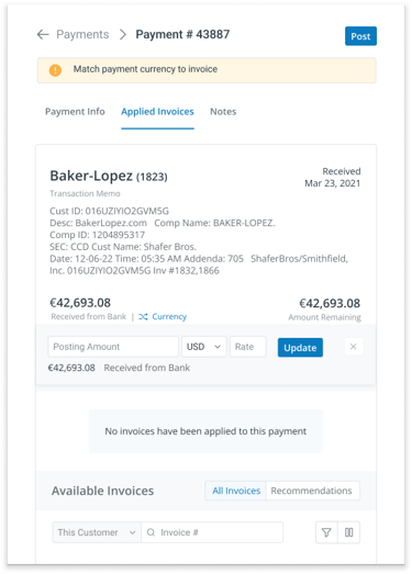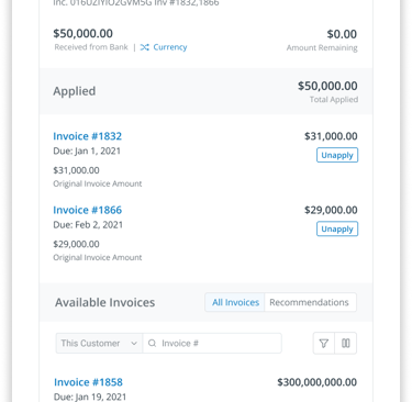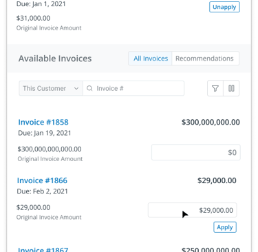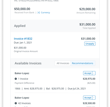 Depending on the state of the match, users would need to take different actions and complete different activities to fully apply invoices to a payment.
