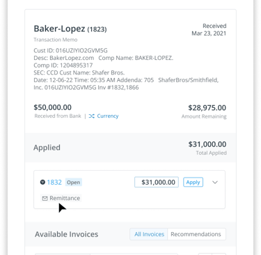 the matching algorithm to improve match performance. However, the technical architecture of this process meant that remittance data was only available for invoices that were matched to a recommendation. Considering that remittance is the number one resource when a match can't be found, and AI-parsing is more art than science currently, this meant that the system could not conveniently surface remittance information to users when they were in research mode. This missed opportunity not only impacted the cash application workflow but also limited upsell and value-add opportunities in the wider product.