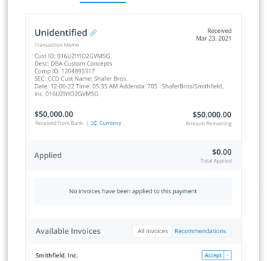 Matching incoming payments to invoices is a critical step before revenue can be realized