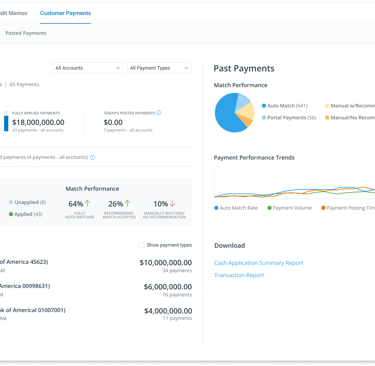 This dashboard design represents the end-state value of cash application: helping users see their business landscape and understand what the system handled versus what still needed their attention. In practice, we shipped the underlying workflow first—intentionally deferring rich analytics to focus on getting the matching right and helping users complete their work faster before visualizing it.